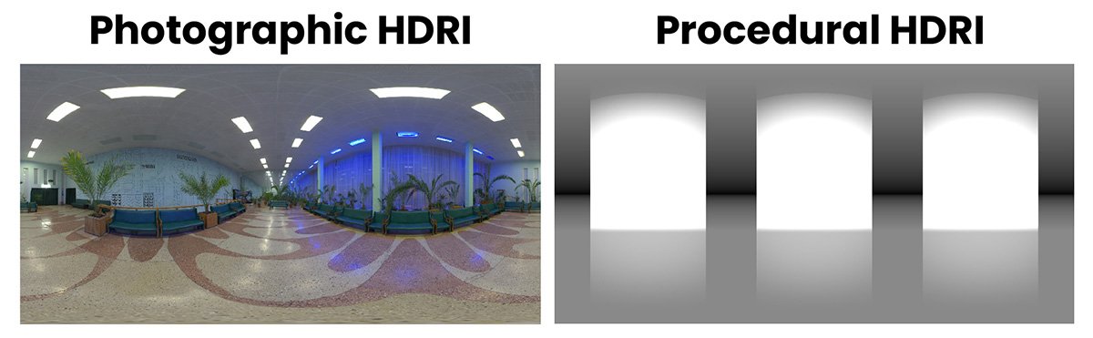 HDRIs may resemble real-world places if they're photographic environments. Photographs are used to create these HDRIs.