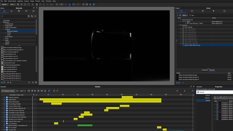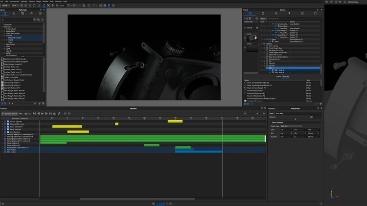 I animated the compact mirrorless camera in KeyShot using my typical approach. Being all about efficiency, I blocked in the major movements of the product. Then, I dialed in the timing of each movement. After I was happy with that, I worked in the little details that make the animation a bit more dynamic.