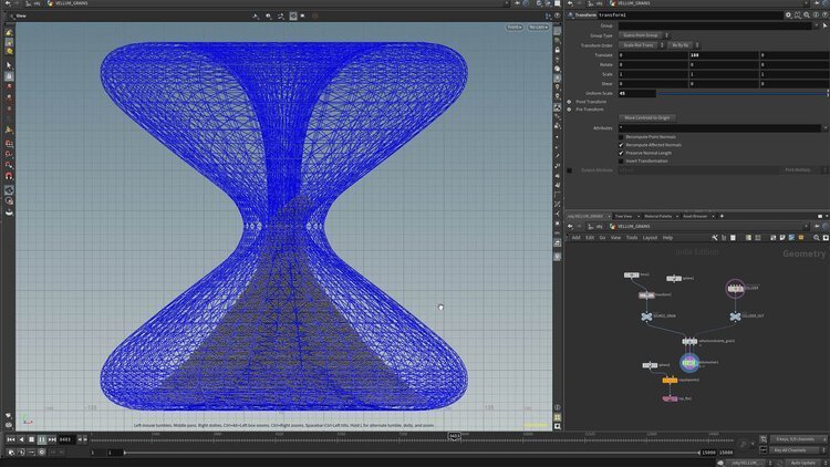 I quickly modeled the glass in Fusion 360. I used Houdini to simulate the grains. This turned out to be a much bigger challenge than expected due to how many particles there were. Additionally, this was my first time using Houdini for a design. I converted the particles to geometry and export them in order to render them in KeyShot. This was an incredibly heavy process that required quite a bit of troubleshooting an patience.