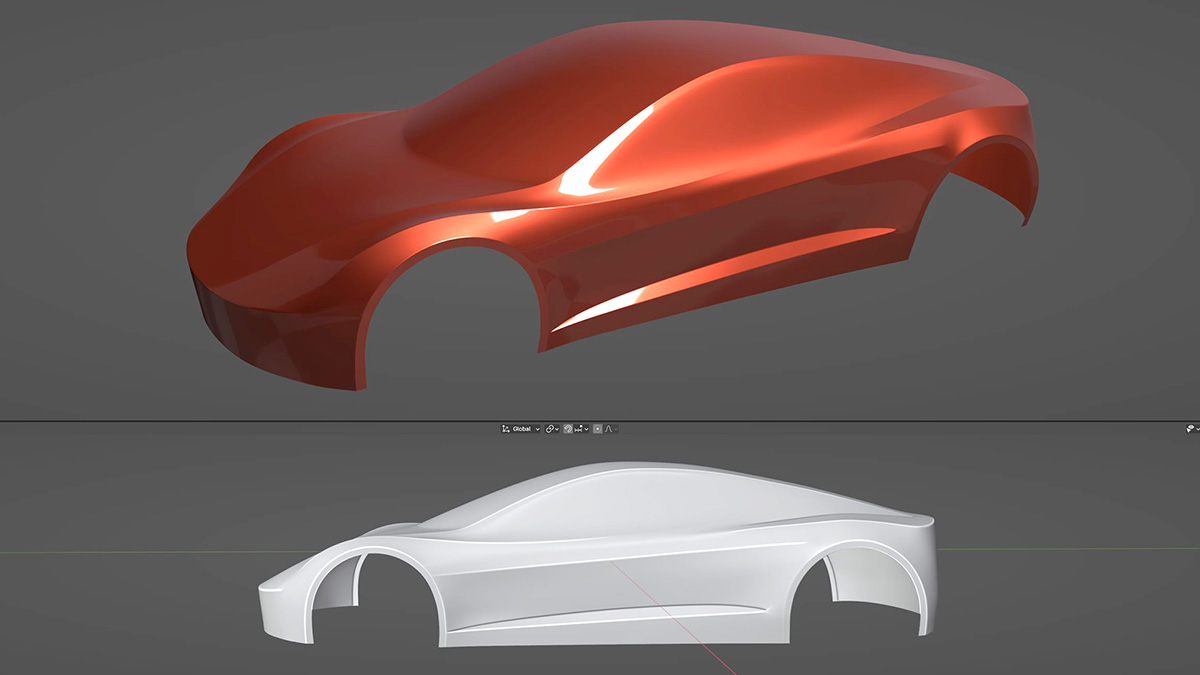 On days 61-69, I spent a total of 13 hours 26 minutes learning Blender. During this time, I finished up the Tesla Roadster car I’ve been modeling. Creating detailed shaders for each material on the car was a good way to dive into Cycles. It’s a fair bit different than KeyShot and spending time learning about all the different nodes and approaches to material creation was fun. The same can be said about lighting as well. I finished up with creating a few studio renderings of the finished car. Very satisfying. In total, the car project took me 54 hours and 30 minutes to complete. This includes the time it took to watch the video lessons. The tutorial can be found in the paid courses at CGFastTrack.com if you’re interested.