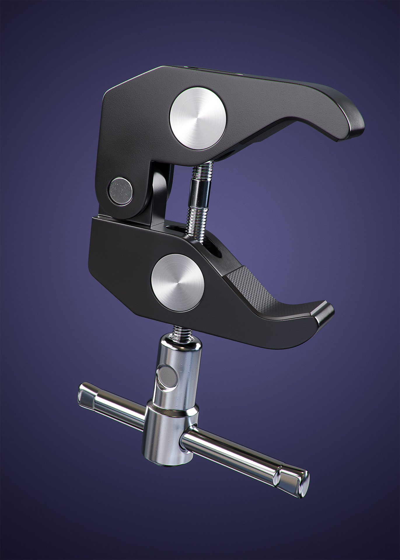 For my day 50-day mini project, I chose to model a SmallRig Super Clamp. This was WAY more difficult than I expected given all the intersecting holes and threads. I was unable to keep the topology as clean as I wanted, but had to make some compromises in order to finish the model.