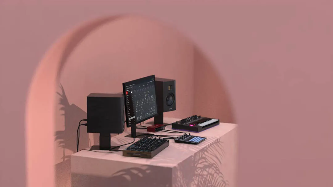 I wanted to create two unique sets for the viewer. So I started with Circuit Tracks on a concrete plinth with dramatic, yet natural lighting. When Tracks is floating, the lighting becomes very blue, giving off midnight club vibes. This represents where the creator is in his or her head when producing beats, but also performing. Moreover, the animation concludes with Tracks back on a desk. This returns the viewer to reality. Finally, it helps them imagine using the product in his or her own setup.