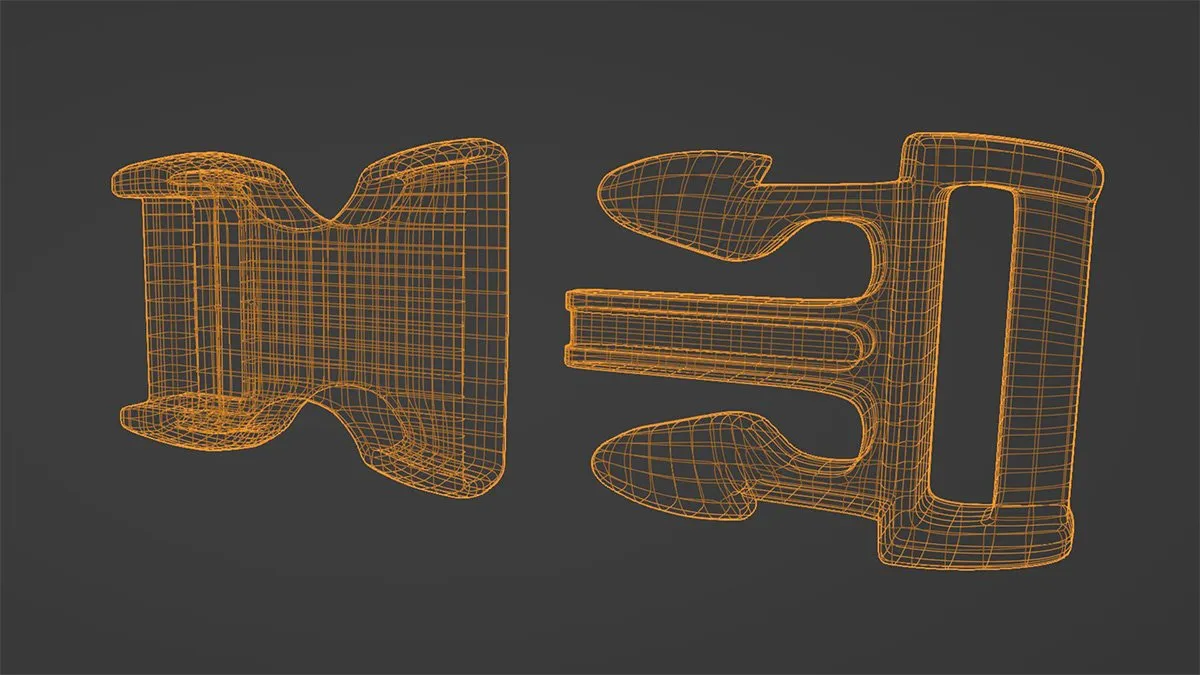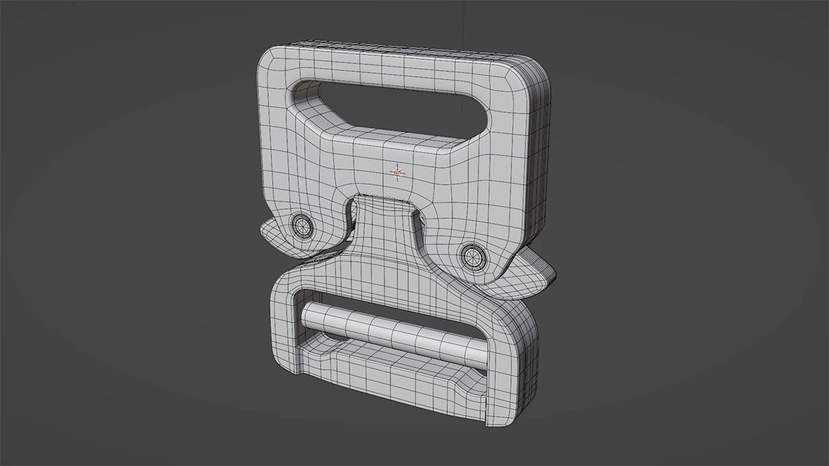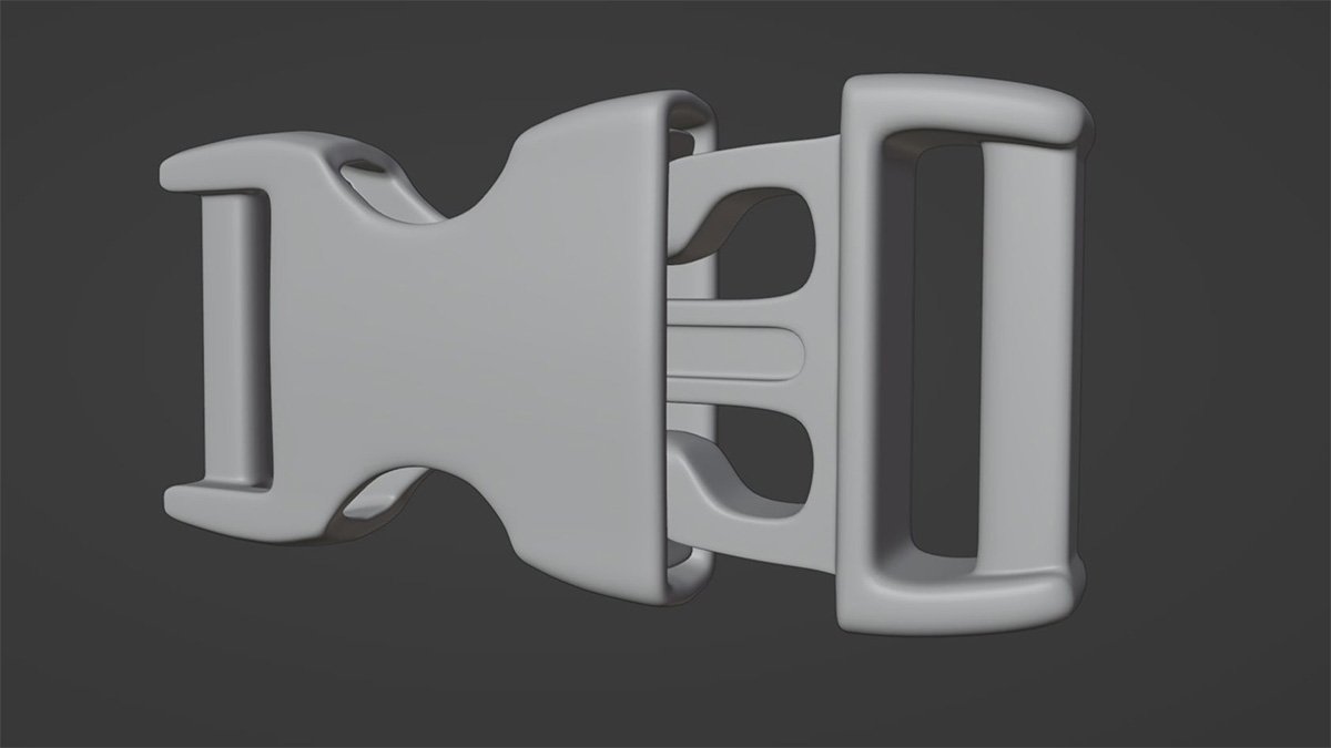 For my day 30 mini-project, I chose to model a plastic buckle. I spent 3 hours 46 minutes on this project. It turned out to be more of a challenge than I expected. Maybe I should expect that from now on. I really wanted to make sure I created quality topology. It’s easy to hide mistakes on the ‘inside’ or ‘backside’ of the model. However, I knew I wanted to render the result with a cloudy plastic material. This meant I needed good topology all around.