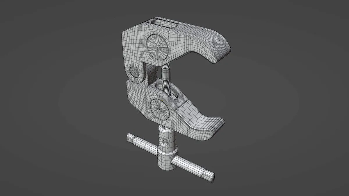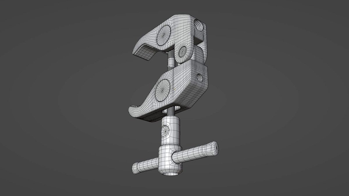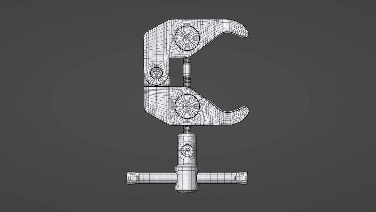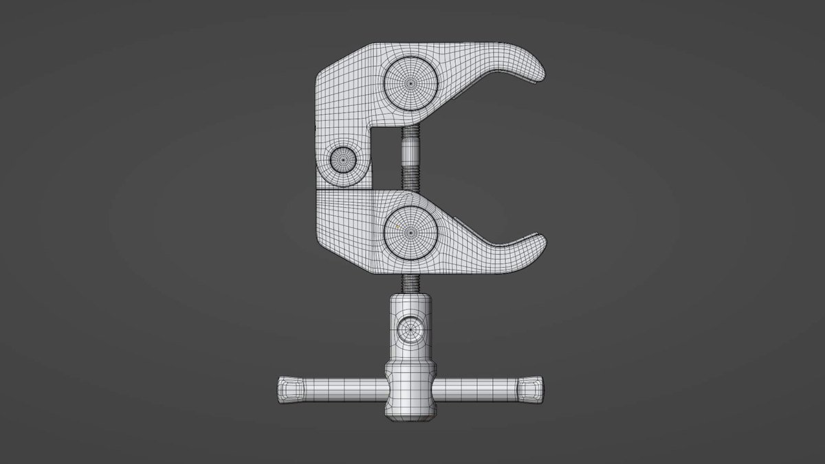 This is a great example of an object that should be modeled in CAD or another solid modeling app. Modeling something like this with traditional polygon modeling is terribly difficult and inefficient. I’m proud nonetheless that I finished it. Far from perfect, but a great learning experience that tested my patience. In total, I spent 7hrs 51 minutes modeling this clamp.