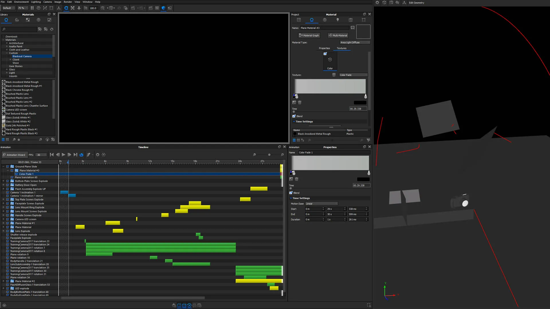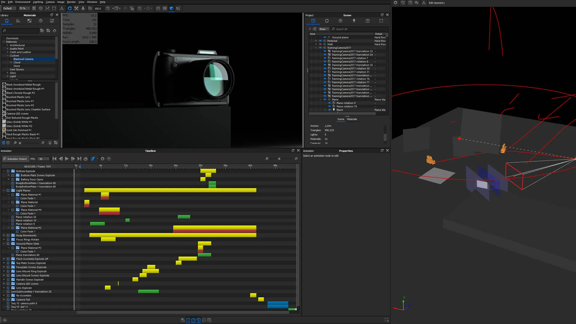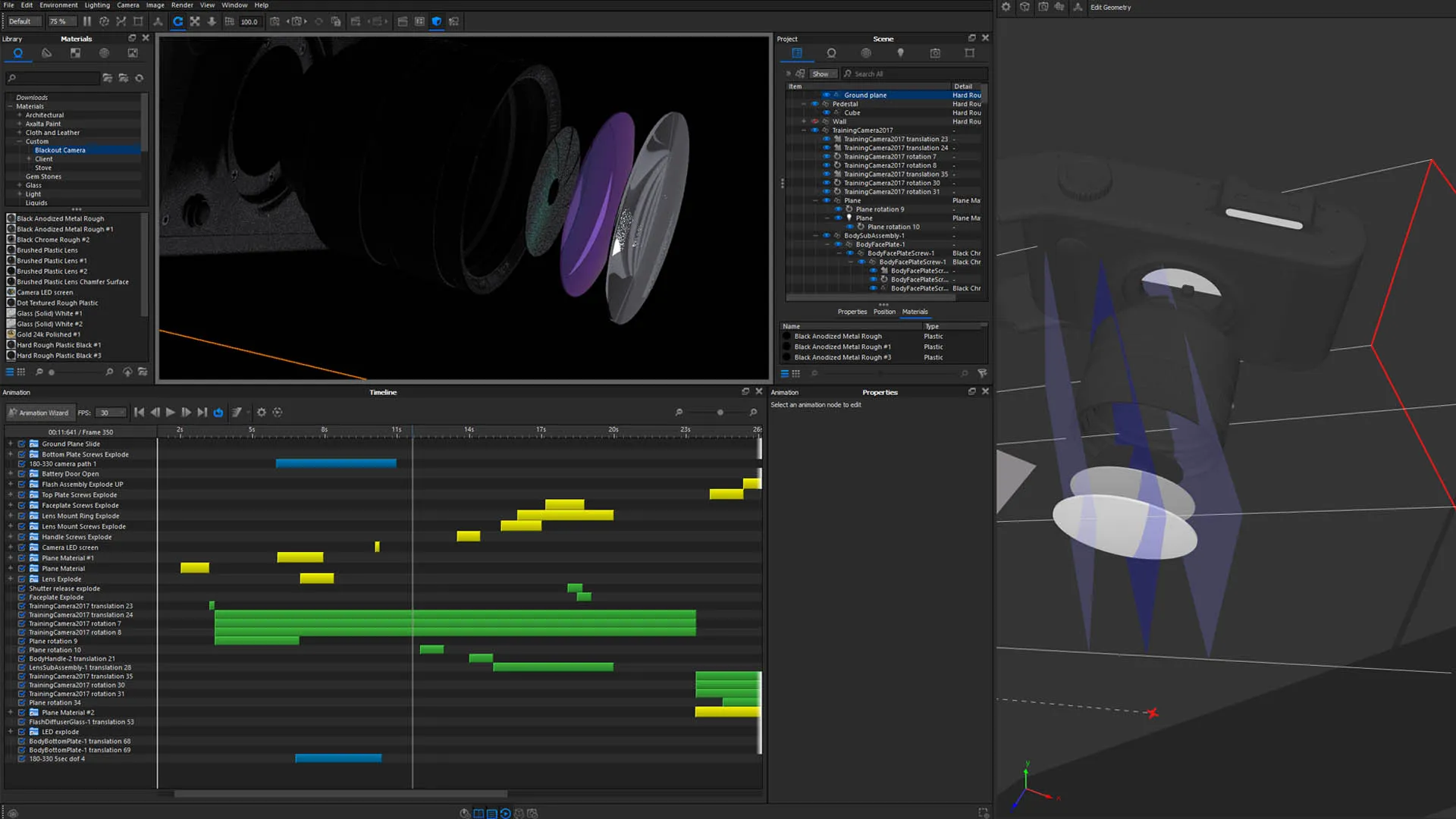 I animated the compact mirrorless camera in KeyShot using my typical approach. Being all about efficiency, I blocked in the major movements of the product. Then, I dialed in the timing of each movement. After I was happy with that, I worked in the little details that make the animation a bit more dynamic.