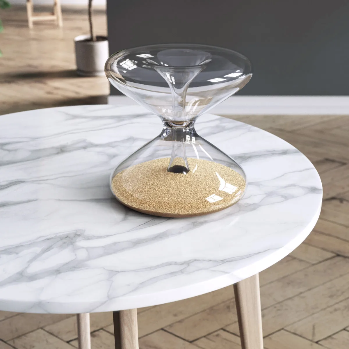 The grains flow around the center. Hence, the grains represent the passing of time. When you look down the center of the hourglass, you see there are no grains. This carries different meanings depending on the viewer. To me, it represents clarity. Therefore, the grains remind me that everything shall pass, good and bad. The center represents clarity, and a cosmic timescale. There were things before me and there will be things after me. It forces me to challenge my own beliefs and to find comfort in my mortality.