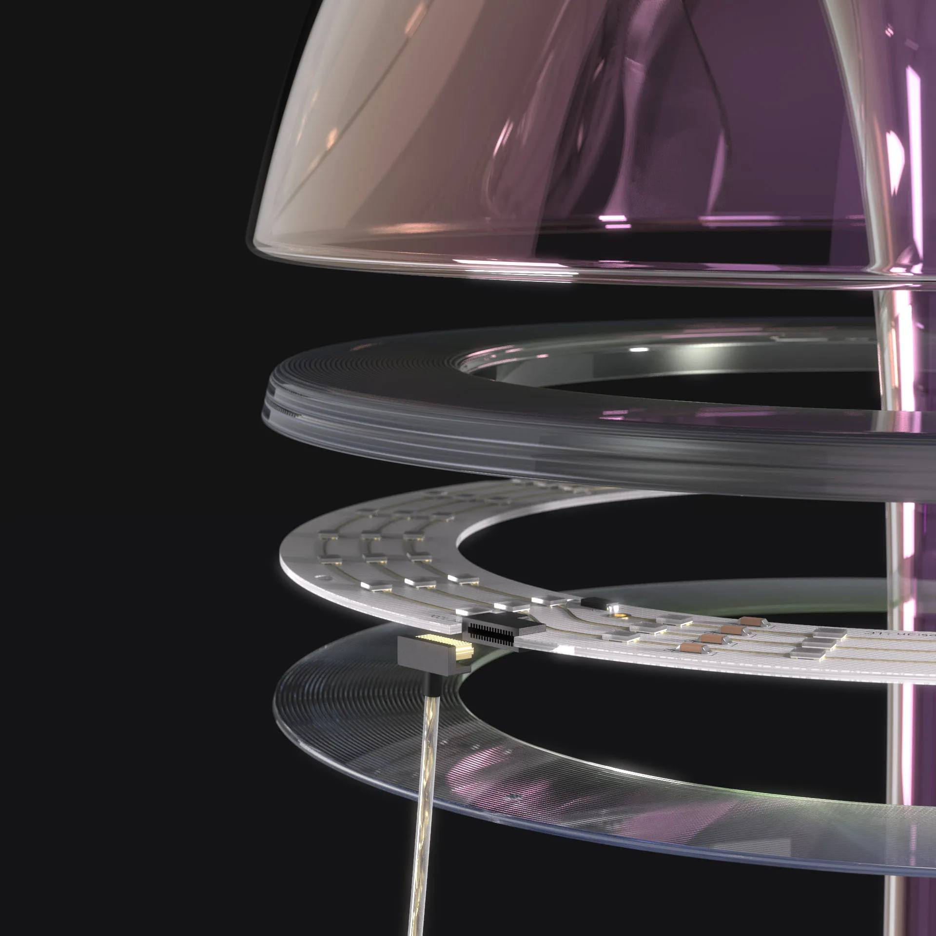 To test my theory on the form of this lamp and how it would refract light, I rendered an animation of a camera travelling through the central column of the lamp. The stars are an HDRI image that are reflected and refracted through the multi-layered optic material. This was to create a visual to parallel the journey many main characters take through wormholes in many of my favorite sci-fi films.